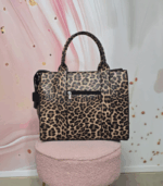 De piel con asa larga incluida , 33cm Ancho x 26 cm Largo.