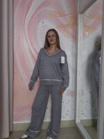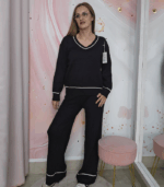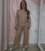 El Conjunto Alba combina a la perfección comodidad y elegancia casual. Su diseño de dos piezas, con jersey de cuello en pico y pantalón fluido de corte recto, crea un look moderno ideal tanto para estar cómoda en casa como para tus planes fuera.